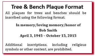 All plaques for trees and benches should be inscribed using the following format.